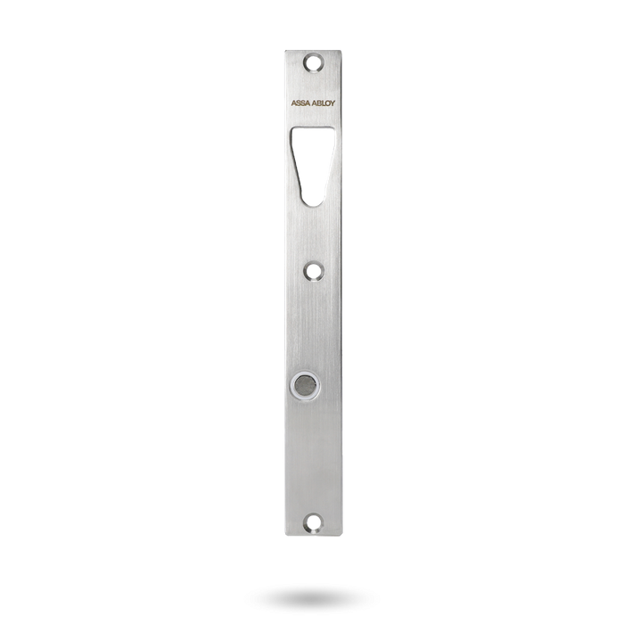 The ASSA ABLOY ES8100 Retrofit Strike Plate which can be used as a direct replacment for the ASSA ABLOY ES8000 Strike Plate when an ASSA ABLOY ES8100 replaces an ASSA ABLOY ES8000 V-Lock. An ASSA ABLOY ES8100 V-lock retrofit 27mm wide strike plate for use when replacing the older ES8000 model.